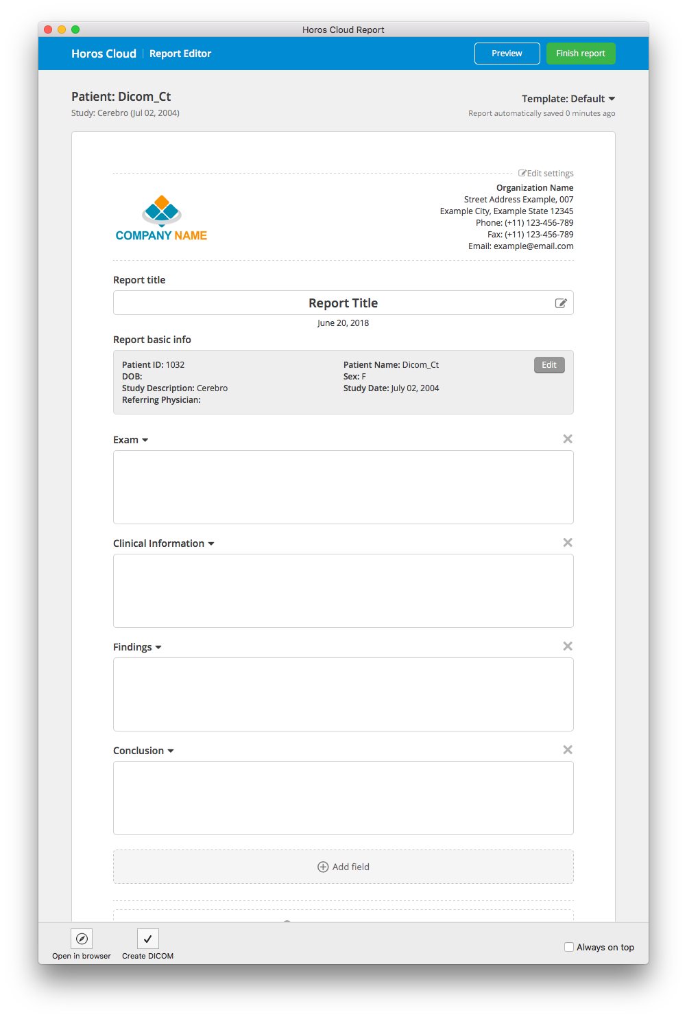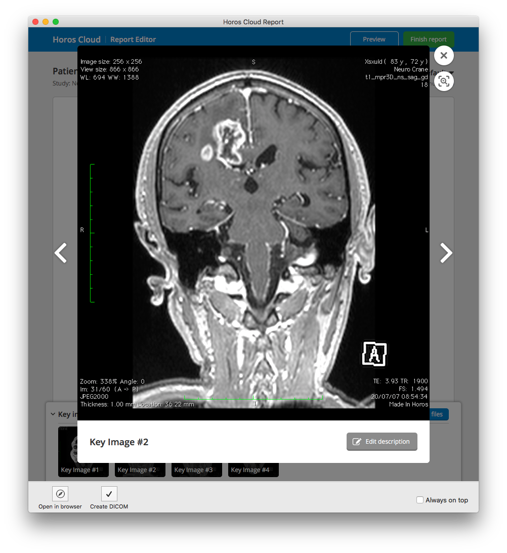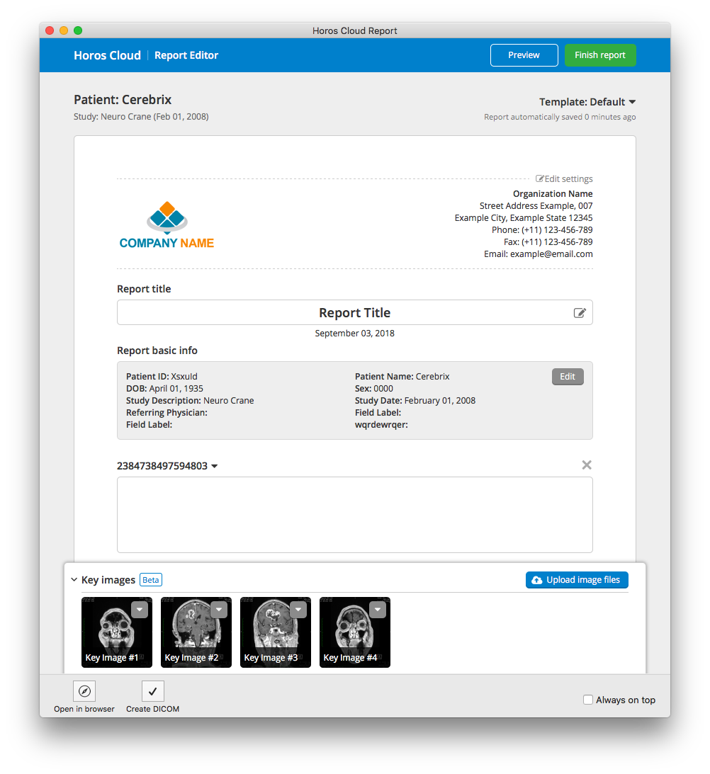 - Create and share personally branded reports from Horos...within minutes.