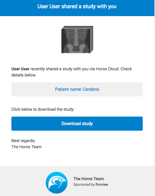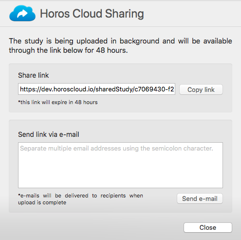 - Securely share medical imaging studies from Horos.